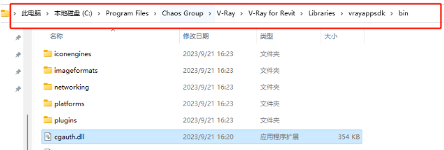 10、将复制的cgauth.dll粘贴到 C:Program FilesChaos GroupV-RayV-Ray for RevitLibrariesrayappsdkin 替换