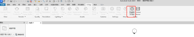 14、然后在Revit 工具栏找的 VRay 栏,点击 Enable V-Ray ,会卡一下,稍等片刻