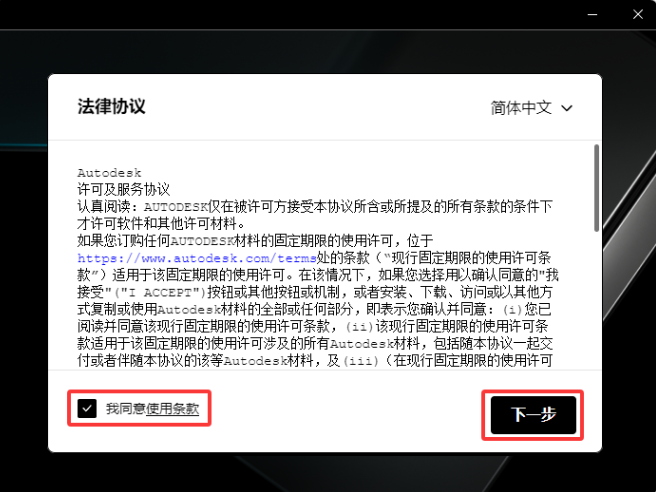 【勾选】我同意使用条款 点击“下一步”