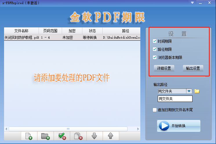 它功能强大,能设置时间、路径、版本期限,让 PDF 在规定条件外无法使用;还能线性化输出提升浏览速度,添加双密码保护版权。特色满满,添加文件后可显示页码与加密状态,自由调整处理顺序,支持多浏览器版本期限,能追加日期到文件名。