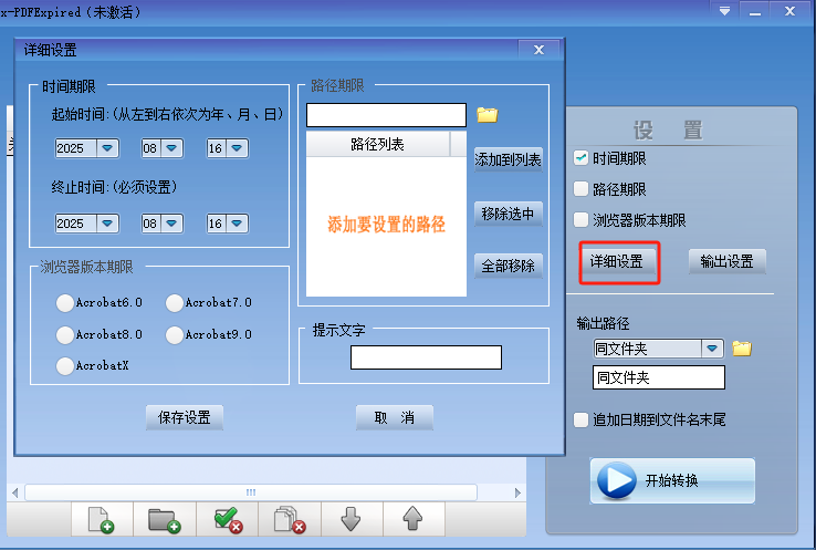 4、点击详细设置,对时间期限、浏览器版本期限、路径期限进行设置
