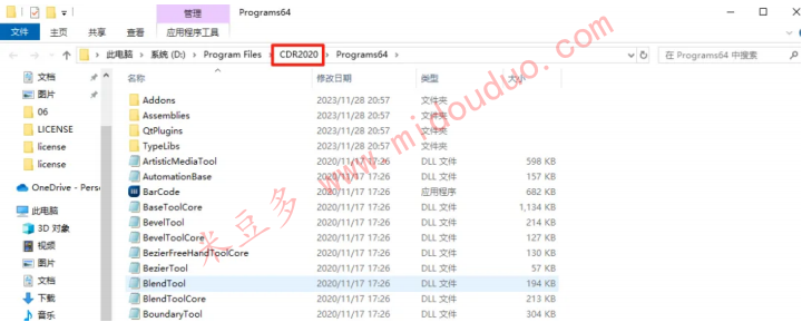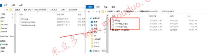 8、将⽂件夹中的三个.Cpg ⽂件复制到 CDR安装⽬录 CorelDRAW Graphics Suite 2020 \ Draw \ Plugins64下