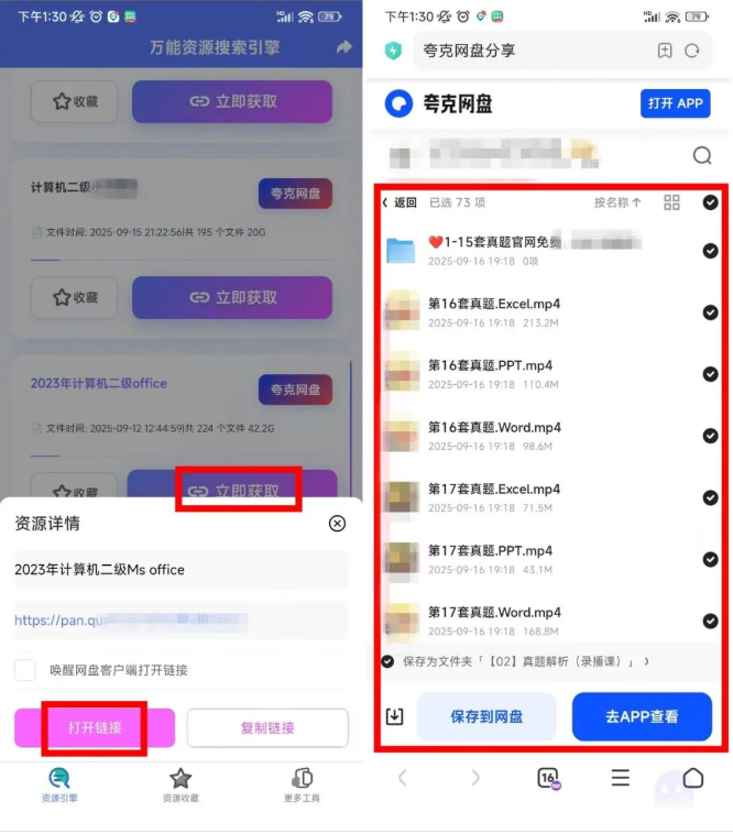 资源获取与利用:在搜索结果中找到所需资源后,点击即可打开资源链接。用户可根据自身需求将资源保存到个人网盘,便于随时访问;也可直接下载到本地,方便离线使用。